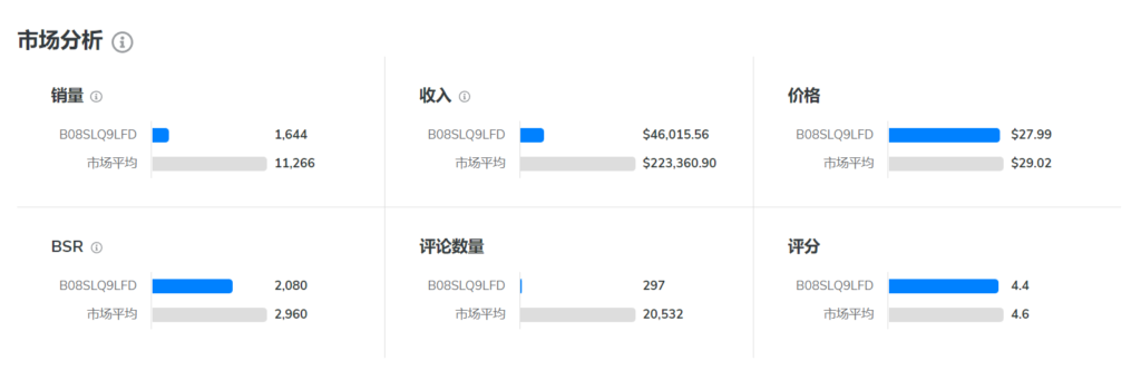 该模块主要将Listing与其所在细分类名的平均水平进行对比