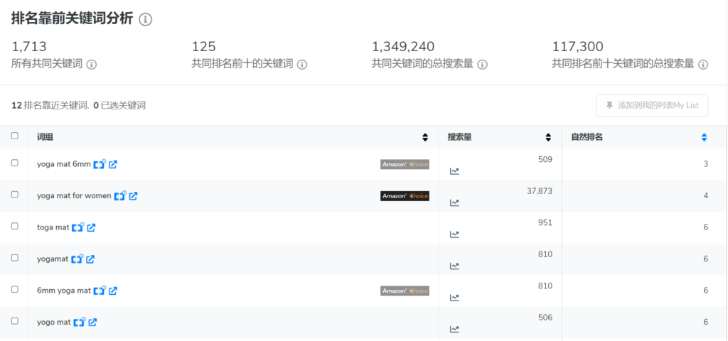 共同排名前十的关键词:至少2个ASIN的自然排名都进入前10名的关键词数量