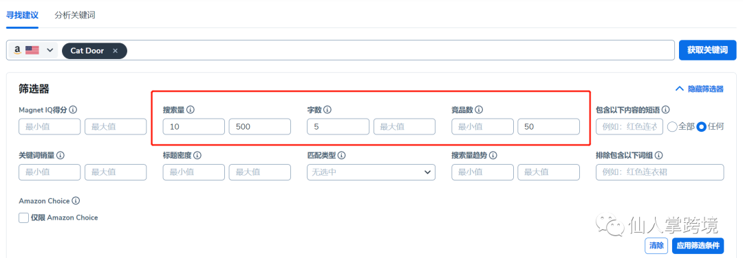 首先,输入产品的核心关键词(以Cat Door为例)
