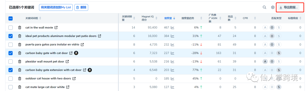 根据自己对产品的了解,阅读这些关键词,相关度较高的直接勾选导出;不太确定的词,放到亚马逊前台搜一搜看看结果