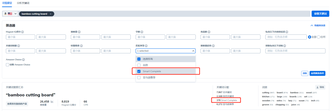 你只需要在Magnet中多多关注【自带黑色字母a尾巴】的关键词即可,它代表的含义是Amazon’s choice,官方认证往往更具准确性。