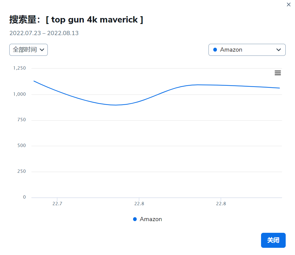 点击搜索量图表,将趋势表时间设定为“all time”,可以进一步证实,该词的数据初次出现时间是在上个月份,说明这是一个不折不扣的新词。