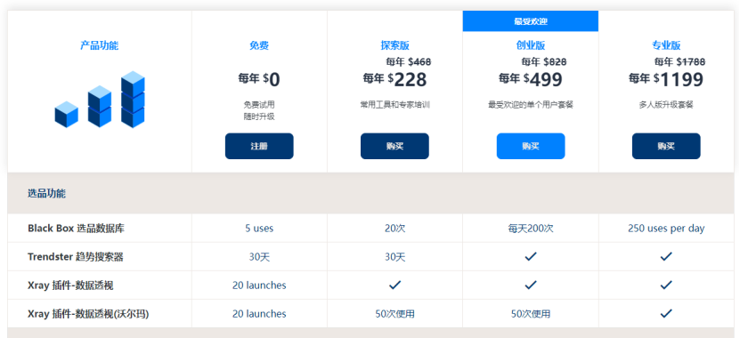 • X-Ray插件数据透视:数据更透明,选品更自信;产品销量预估、销售趋势变化、价格及费用情况,尽收眼底