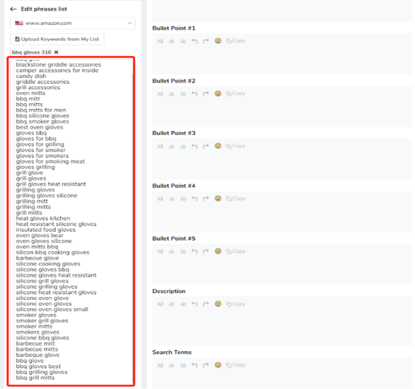Scribbles作为 Helium 10 的主打产品(也是最受欢迎的工具之一),这款Listing优化工具可以对关键词进行排序,并且使用不同的颜色来告诉您每个关键词的搜索量大小,以便您在编辑Listing时确保将所有重要的关键词都埋进您的标题和五条细节描述当中。