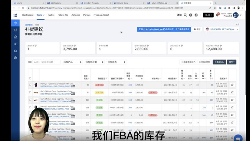 helium10 库存管理—自动补货建议,可以根据仓库内现有的库存,在途的库存以及计划补充的库存进行一个合理化管理,让我们可以科学地去进行库存把控,给卖家提供补货建议。