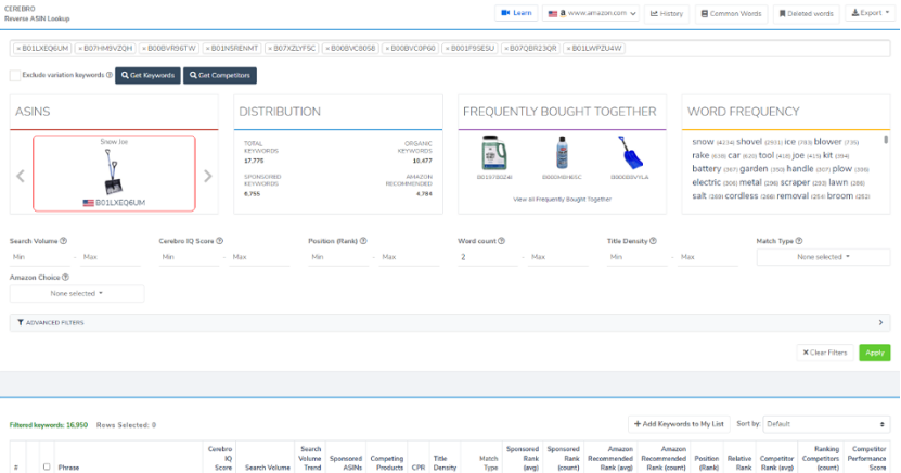亚马逊卖家在运营推广阶段,产品关键词设定的越精准,listing的曝光就越多,想获得更多曝光量和转化率就需要获取精准的关键词布局到listing中,如何获取到核心精准关键词呢?Helium 10的Cerebro Asin反查来帮您,帮你挖掘亚马逊竞品核心流量词,让竞品ASIN为你所用!