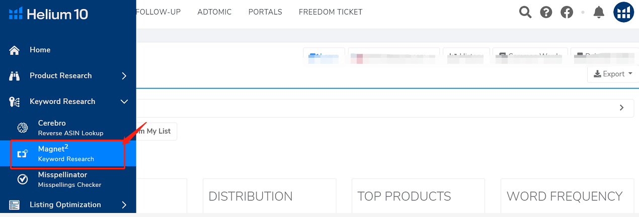 可以用专业的工具去找关键词,比较常使用的是Helium 10,可以使用Helium10中的magnet选词神器,找到自己同类产品的关键词,在右边的搜索框中输入产品名字,再按照条件进行搜索,找到产品关键词,每个人用的工具不一样,可以按照自己的习惯去使用工具。