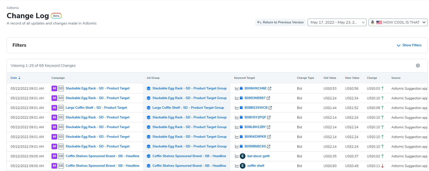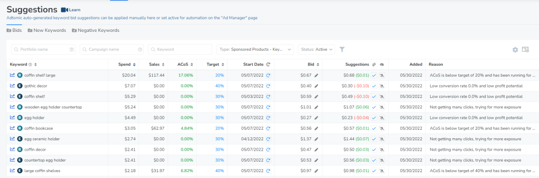 H10-Adtomic工具由复杂的人工智能和H10专有算法提供支持,提供精确的关键词竞价建议,以消除优化中的猜测和跑腿工作。将其视为您一直在寻找的专业的竞价教练,可以充分发挥每个关键词的效果。