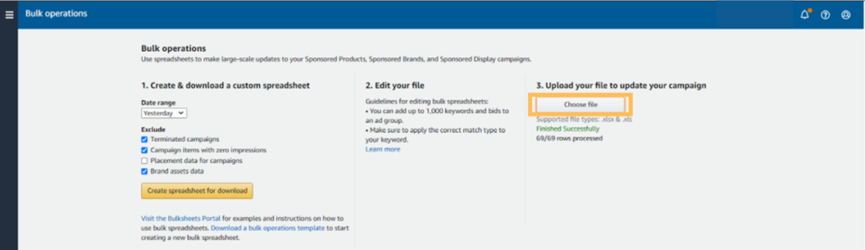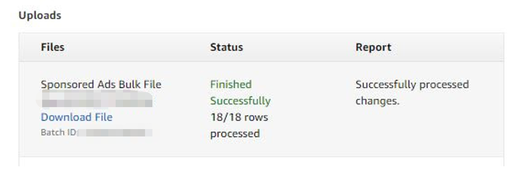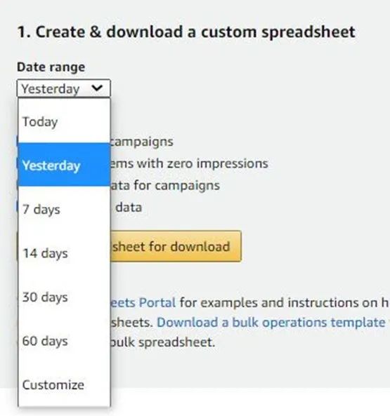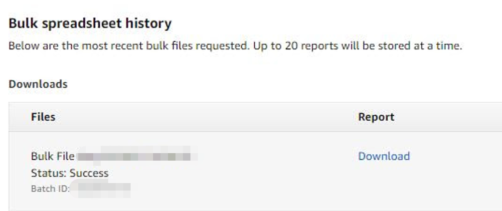 在您的亚马逊广告管理面板中,您会在左侧菜单中注意到一个名为“批量文件”的部分