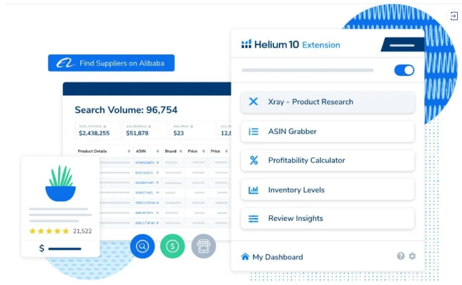 Helium 10是一款极其强大的亚马逊选品工具以及卖家运营管理软件工具。由23个在线工具组成,这些工具可以直接通过在线方式使用。此外,Helium 10还提供了Chrome扩展插件,可与亚马逊平台无缝集成。