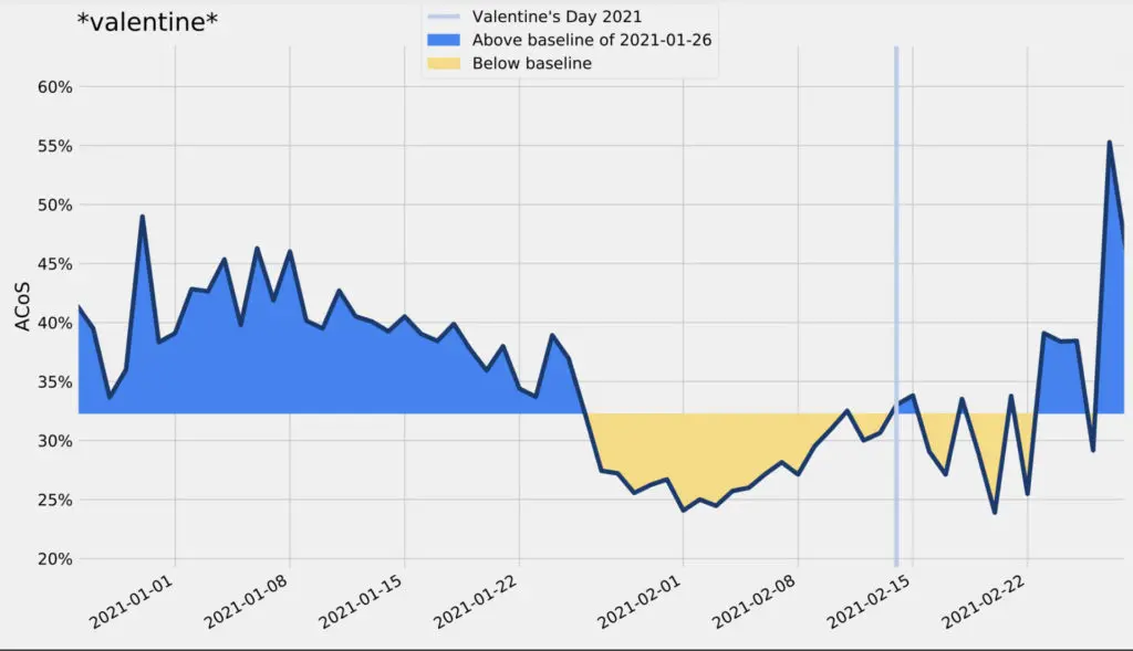 以上可以反映在情人节的 ACOS 搜索,它在1月27日降至30%以下,并在2月9日之前一直保持在30%以下