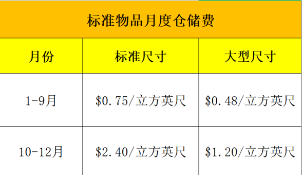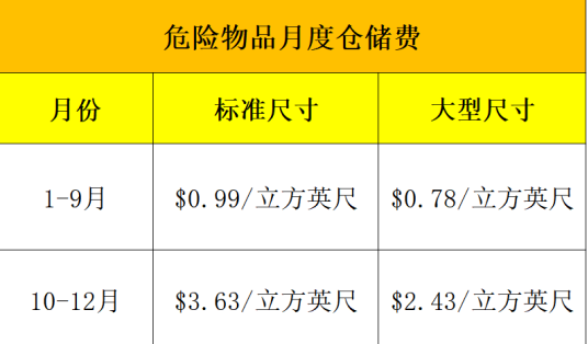 从2022年5月15日起,将对过期库存征收附加费。费用包括271-365天的货物交付,每立方英尺费用为1.5美元。365天(或以上)的标准费用维持不变,为每立方英尺6.90美元(或每单位0.15美元)。