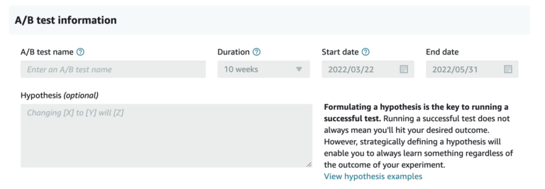 如果您仍然不确定如何表达您的假设,您可以单击蓝色的“View hypothesis examples”按钮,以更好地理解它。