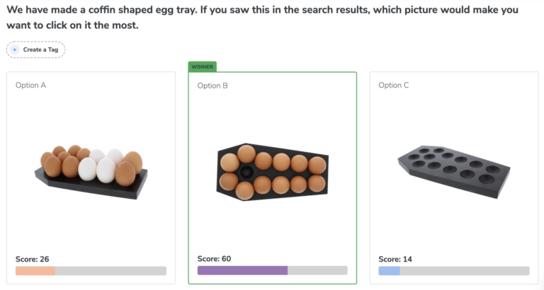 您可以测试您不确定的任何假设。例如,包装、品牌、图片或哪些好处,更能吸引消费者,并从您自己选择的样本量中获得反馈。