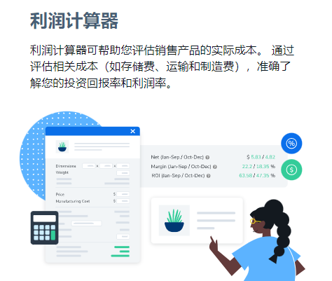 Helium 10利润核算,从智能抓取产品售价、尺寸信息,自动测算头程物流、FBA及仓储费,大数据预估产品成本,手动设定其他费用,利润测算轻松搞定,到精确为产品定价提供数据支撑。