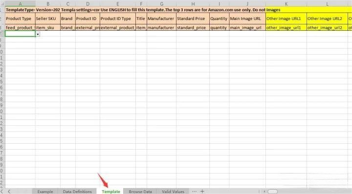4、填写文件模板(注意:不要改变表格的任何格式,亚马逊可能识别不了)