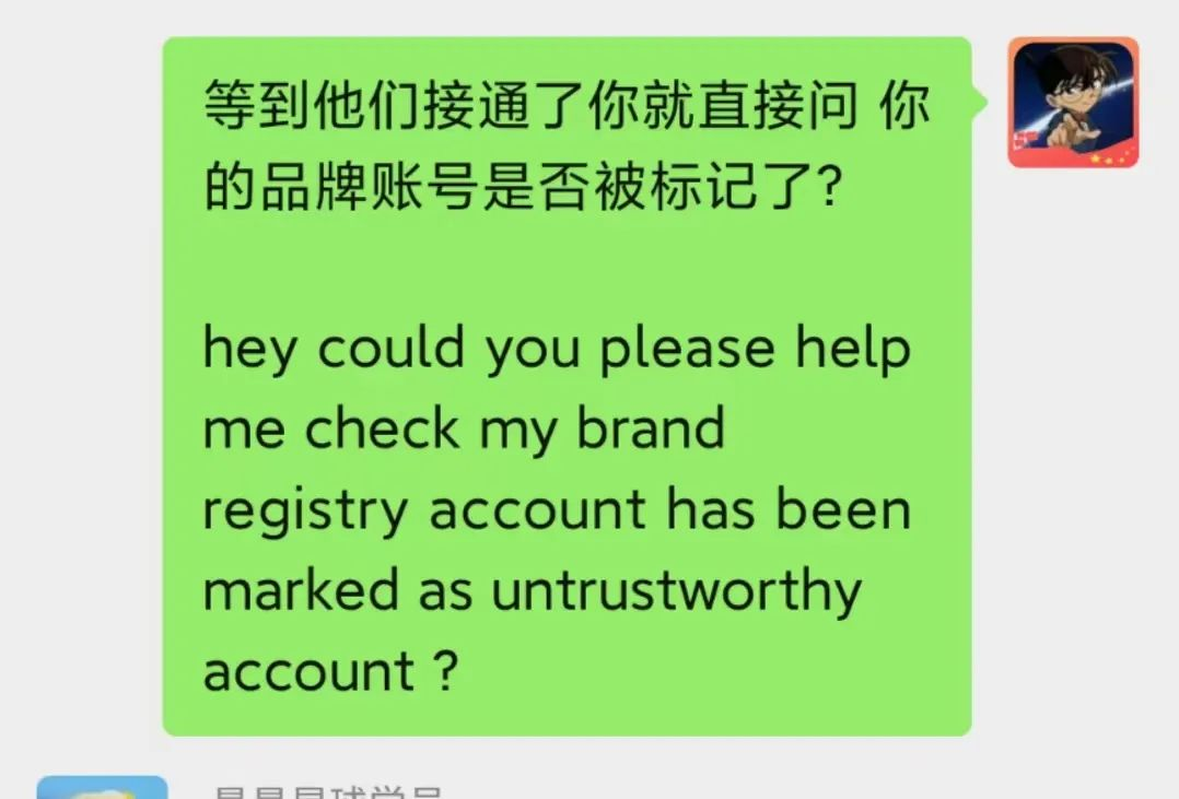 2. 亚马逊品牌账号被标记:假如说你的品牌是新注册的品牌,但是你提交这个品牌发现被亚马逊拒绝了,你换另一个新的品牌还是同样的情况,还是被拒绝了,是因为 你这个品牌账号有不良记录,比如:<1>你以前的品牌代理注册方 违法行为被国家商标局列入黑名单,导致你的账号受牵连。