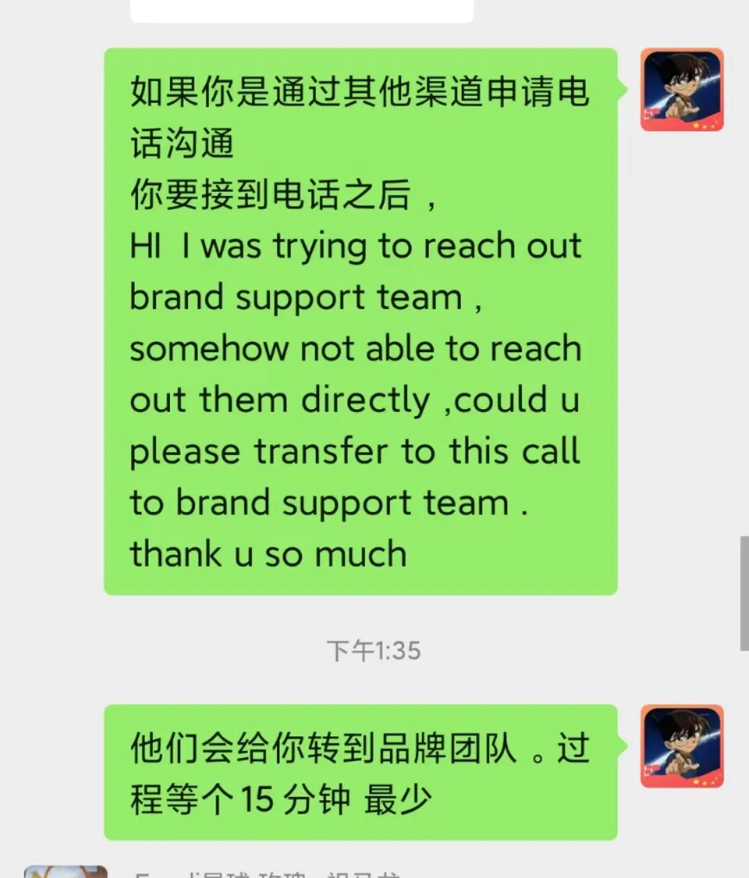 然后留电话 就可以 ,下面我把群里发的内容直接截图发给大家了,需要文字版内容的转发这篇文章再获取!谢谢 ,按照以下顺序 沟通,念出来就可以,他们知道到底出什么问题, 这个转接过程比较久,你可能等个半个小时,这个过程中一共转接三个人,因为每个人的权限不一样的,你就给第二人开始复述同样的问题,他就知道转给哪个同事, 有时候第三个人 他会问这个账号的所有者信息,你就提前准备好你的公司名,地址,什么时候注册这个账号等等,以上问题会被问到的。
