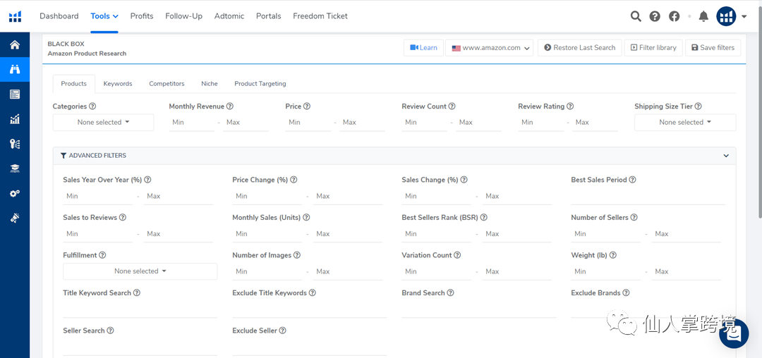 类似于亚马逊Listing当中的组合购买,Helium 10 Black box工具当中有一个Product Targeting功能,可以帮助你进行类目拓展