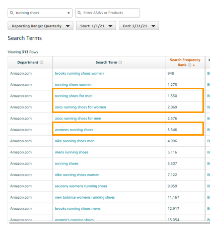 我们输入“running shoe”,就可以找到我们以上几个相关的流量词。