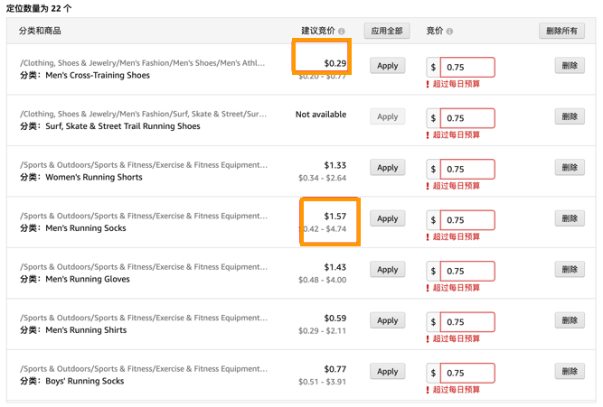 我们还可以使用商品投放的品类投放来找到品类流量的成本。我们经验是,品类流量是很大的,但是成本比较高,如果你的产品评价是比较少,或者评级不太好,转化就不会太好,投入产出也会差点。所以你们斟酌使用。
