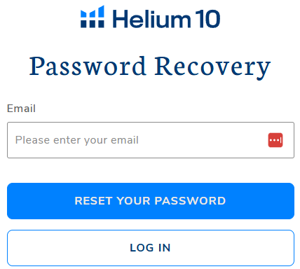 1. 要重置或更改您的Helium 10账户密码,请访问密码重置页面。输入与您的Helium 10账户关联的电子邮件地址。