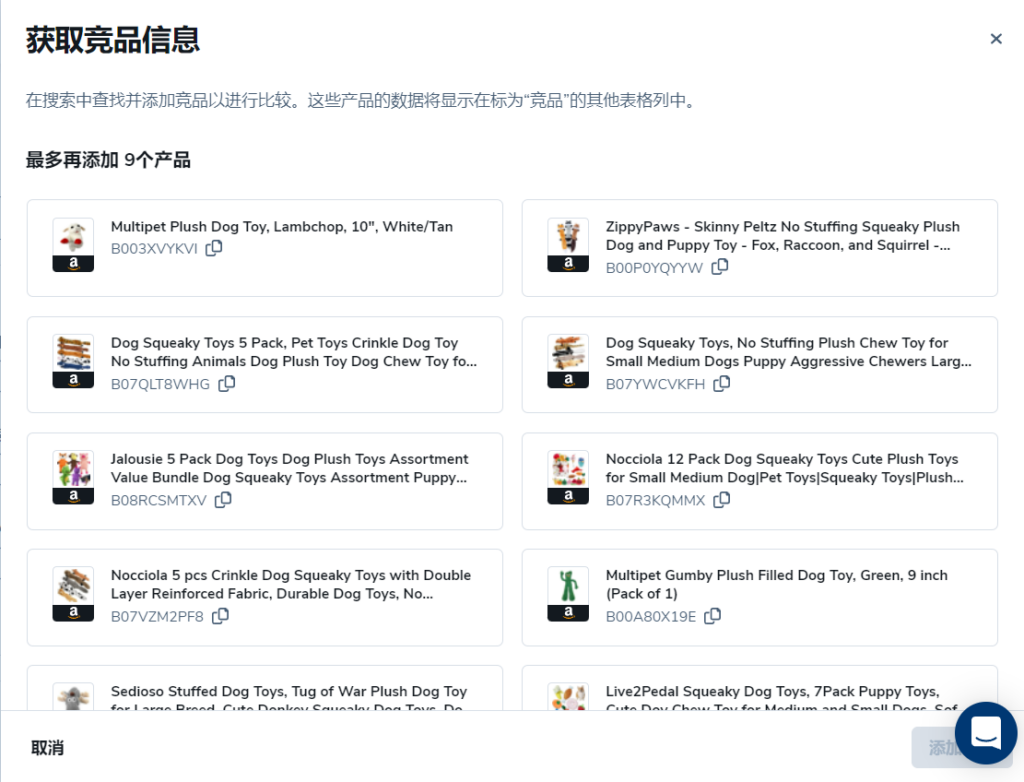 我们可以在此处选择最多9个ASIN与目标ASIN一同进行“关键词反查(获取关键词)”