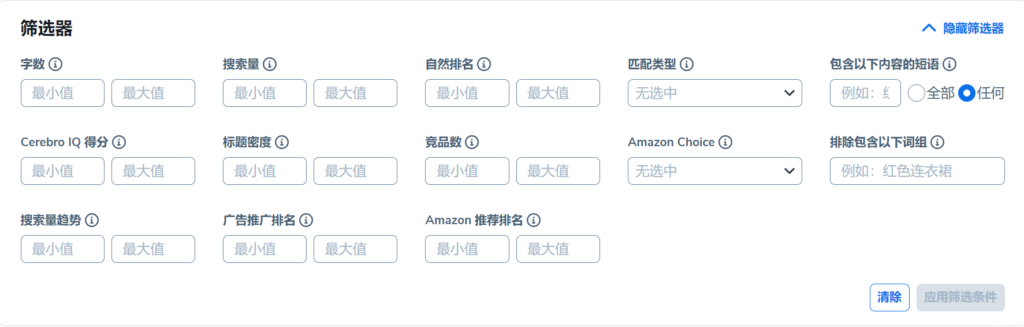 模块一:筛选工具(此处可以设置参数对反查的关键词结果作进一步的筛选)