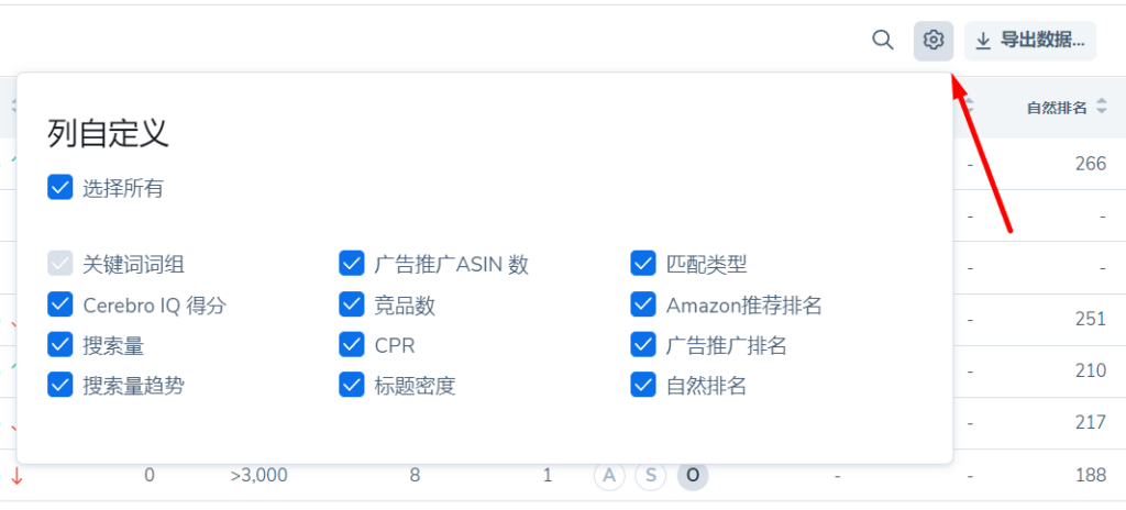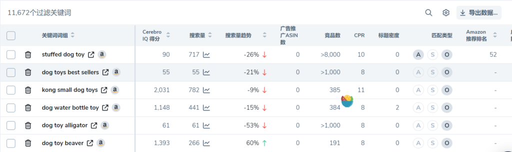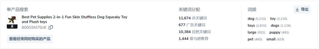 词频:该ASIN关联的所有关键词中各个单词的出现频率,点击右侧的“导出“可以导出