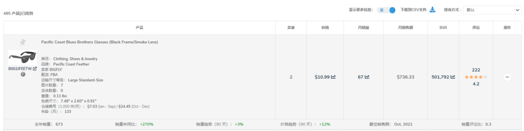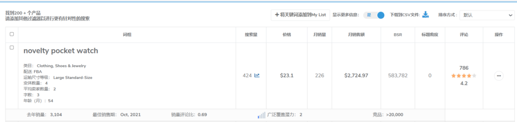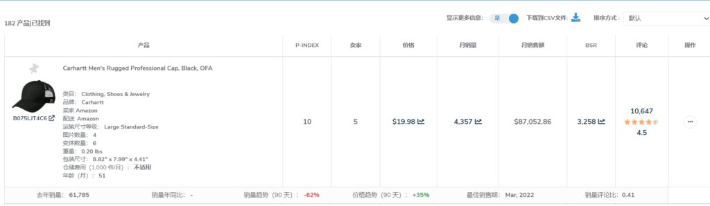 设置好参数,点击“搜索“,系统就会筛选出相应的亚马逊商品