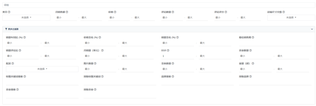 类目:可以在此选择你想要筛选商品的亚马逊类目