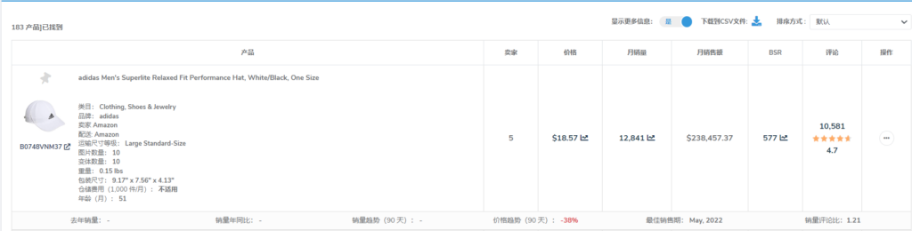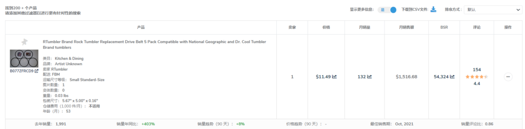 如果您想通过Helium 10大数据来查找竞品,可以使用这个工具,此工具一共分为两个模块:参数设置模块和搜索结果模块